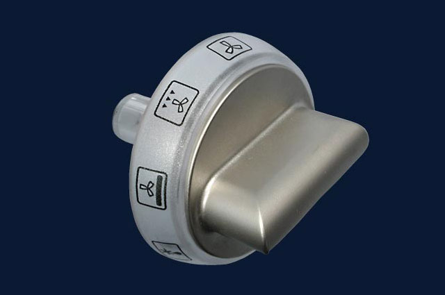 Eine Bedruckung im Tamponrundumdruck hingegen ist zu aufwendig. Deshalb haben wir ein Verfahren entwickelt, um diesen Herdgriff in einem Vorgang von oben bedrucken zu können.